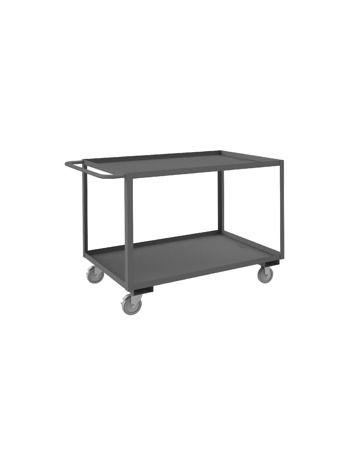 Shelf carts are constructed with 1-1/2" x 1/8" angle iron uprights for added strength. Heavy duty 14 gauge steel shelves. Sturdy tubular push handle. Perfect for transporting heavier parts or stock items. Shelf Stock Carts are available in 1,200 lbs. or 3,000 lbs. capacities. FOB Shipping Point. Steel surcharges may apply.