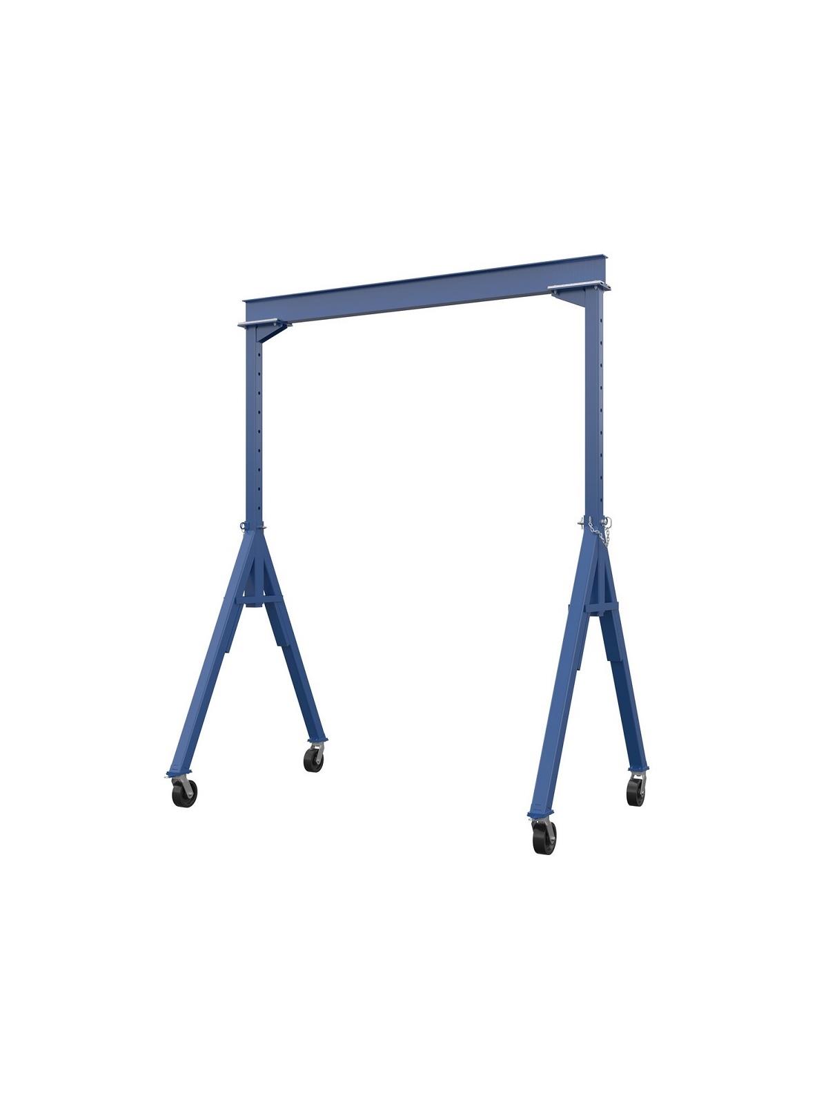 Adjustable in 6" Increments on adjustable models. 4 positions 8" swivel casters standard. FOB Shipping Point. Due to tariffs and market conditions, pricing subject to change. See Related Items tab for Steel Gantry Crane Options.