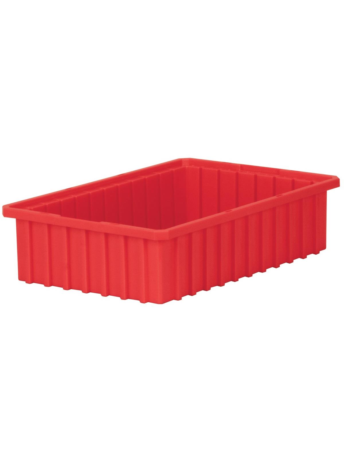 Intersecting dividers allow the container to be subdivided in separate compartments as small as 1-1/8" sq. Injection-molded from high density polyethylene -- resists most solvents and chemicals. Compatible with most racks, shelving and automated material handling equipment. Available in Red, Blue, or Gray. Dividers and lids sold separately. FOB Shipping Point.