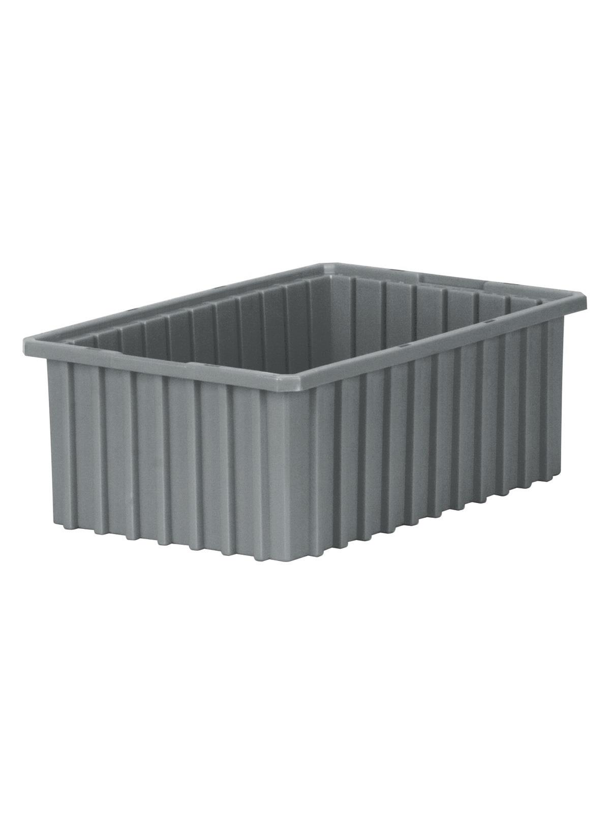 Intersecting dividers allow the container to be subdivided in separate compartments as small as 1-1/8" sq. Injection-molded from high density polyethylene -- resists most solvents and chemicals. Compatible with most racks, shelving and automated material handling equipment. Available in Red, Blue, or Gray. Dividers and lids sold separately. FOB Shipping Point.