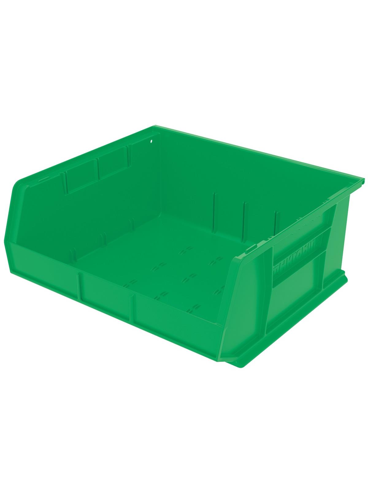 AkroBins are heavy-duty and securely stack on top of each other, sit on shelving, and hang from Akro-Mils racks, panels, rails and carts. Unaffected by weak acids and alkalis the sturdy one piece construction is water, rust and corrosion-proof. Finger grip allows for easy handling. Large label slot for easy identification of contents. Autoclavable up to 250° F. Guaranteed not to crack or break under normal load conditions as stated in the 1-year limited warranty. Optional dividers and labels available, see Related Items tab. AkroBins available in Red, Yellow, Blue, Green, Black, Stone, and Semi-Clear. FOB Shipping Point.