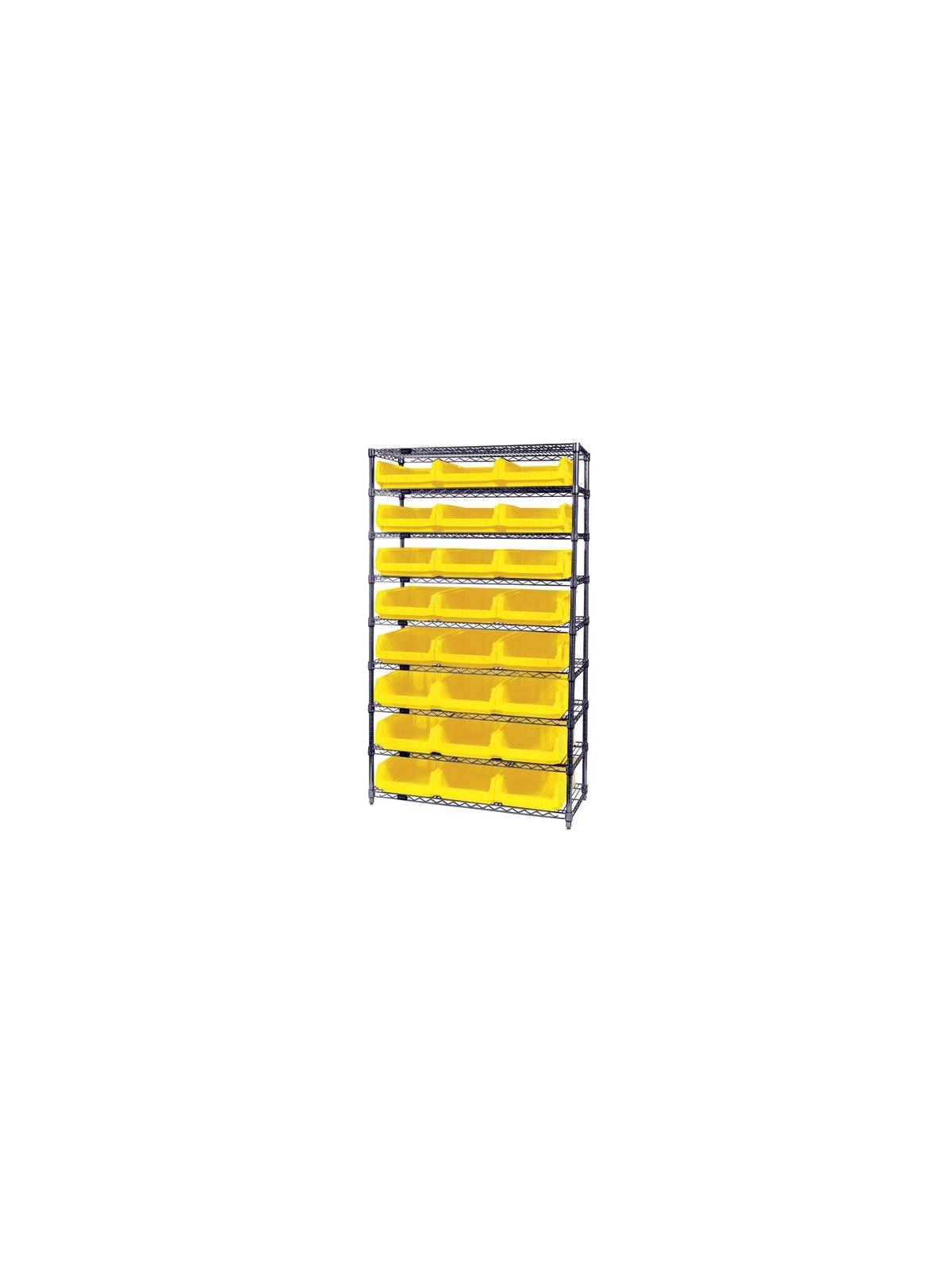 Combine stylish chrome shelving and parts organizing bins. Sturdy shelving unit supports loads up to 800 lbs. Choice of bins. Easy to assemble. Magnum Bins are available in Blue, Yellow, Green, Red, or Black. FOB Shipping Point.
