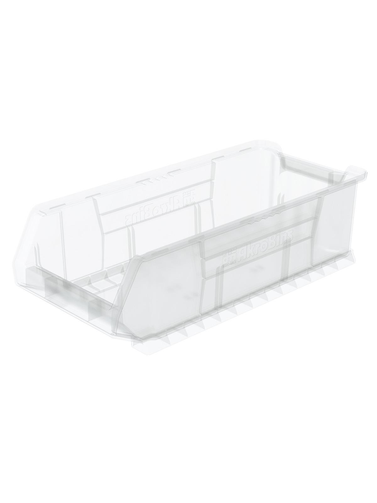 20", 24" and 30" Deep Clear Bins for Super-Size Storage. Large capacity storage bins for organizing heavy or bulky items. Heavy-duty bins molded in clear polypropylene. Extra large stacking containers feature anti-slide stop to prevent bins from shifting forward. Reinforced side ribs add strength and prevent spreading when stacked or loaded. Optional lids and dividers available. FOB Shipping Point.