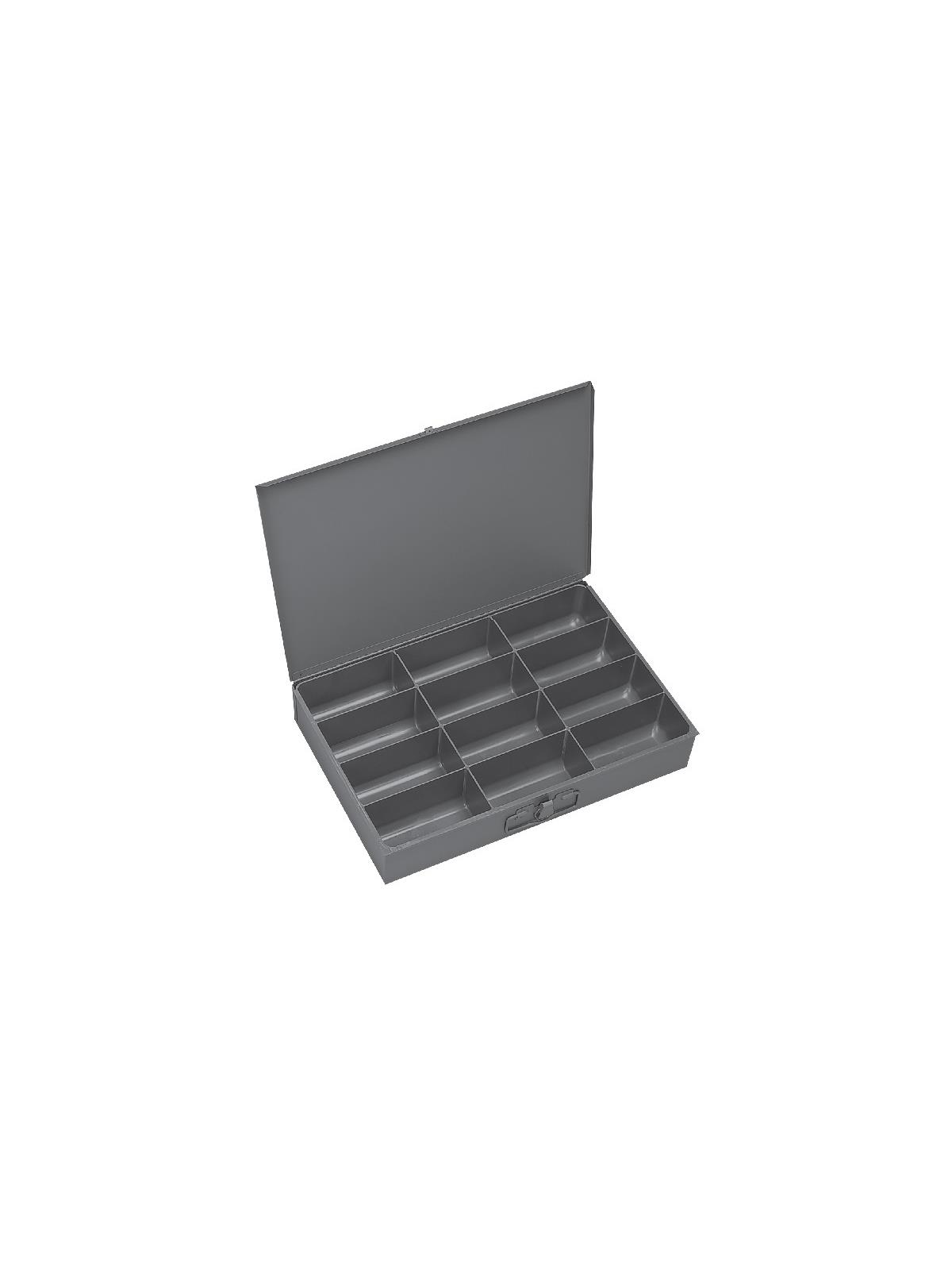 Efficient storage and organization for a variety of parts and components. Each compartment box interior is manufactured of polypropylene with scooped bottoms, both front and back for easy parts removal. Rugged steel, all-welded cabinets are reinforced for rigidity. Use on the workbench, counter or carry to the job site with convenient thumb-grip handles. Finished in acid and rust resistant Gray powder coating. FOB Shipping Point.