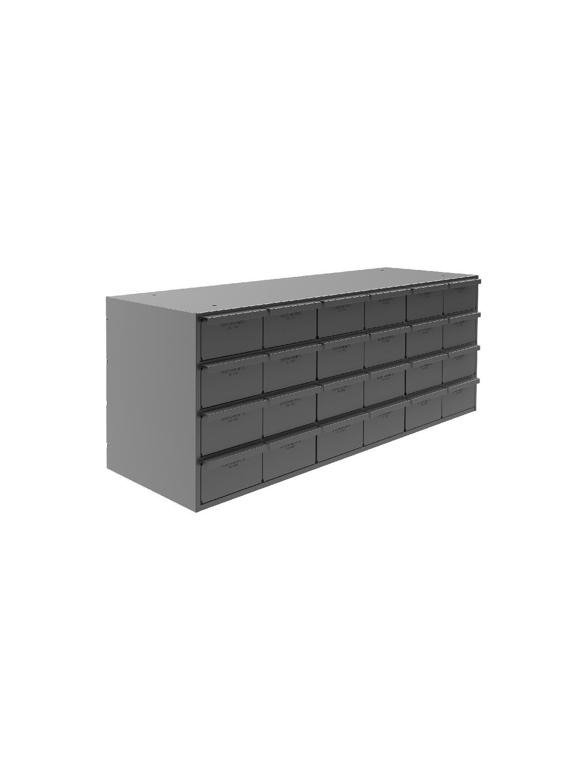 All-welded heavy-duty frame features vertical support for extra stacking strength. A positive stop mechanism prevents drawers from falling out. Drawers also feature double interlocked design for additional rigidity. Full-width handles for a firm grip. Each drawer complete with 2 adjustable dividers. Extra dividers sold below. Fits standard shelving. Finished in rust and acid resistant Gray powder coat. Fully assembled. FOB Shipping Point.