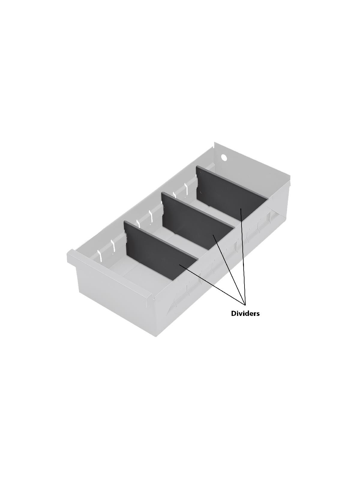 All-welded heavy-duty frame features vertical support for extra stacking strength. A positive stop mechanism prevents drawers from falling out. Drawers also feature double interlocked design for additional rigidity. Full-width handles for a firm grip. Each drawer complete with 2 adjustable dividers. Extra dividers sold below. Fits standard shelving. Finished in rust and acid resistant Gray powder coat. Fully assembled. FOB Shipping Point.