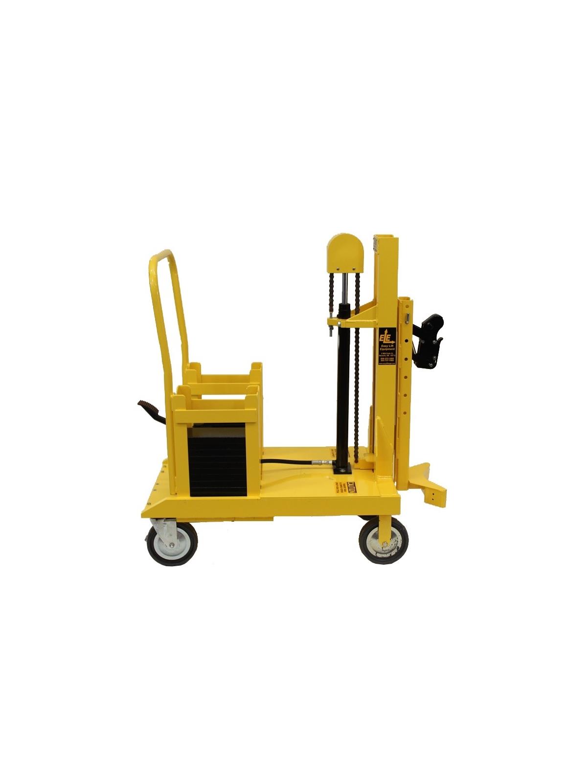 Easy Lift Equipment has developed an extensive line of ergonomic drum transporters since our original model was awarded a US patent in 1997. Designed for virtually maintenance-free operation our drum transporters help eliminate the risk of injuries caused by manhandling drums.  All models are available with both intrinsically or non-intrinsically safe scales; for quickly and accurately weighing drums without the need for floor scales. The EG1 and EG2L clamping heads are designed to handle a chimed plastic, steel, or fiber drum. All models are available with 20” of lift, with optional taller masts for double or triple stacking. Standard models are steel construction with safety yellow powder coating for durability. Optional FDA approved “metallic gray” powder coating, as well as full 304 stainless steel construction are also available for food and pharmaceutical applications. FOB Shipping Point.