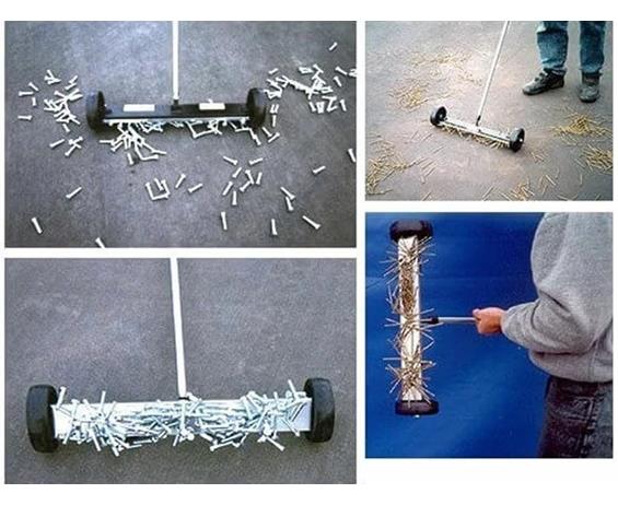 Capable of holding a 50 lb. steel plate, this hard-working magnet is perfect for use on warehouse floors, driveways and job sites. Its removable handle makes for easy transport and storage. 20" overall length, 2-1/2" face width and 1-1/4" ground clearance. 5" wheels works well on smooth terrain. FOB Shipping Point. Surcharges may apply.