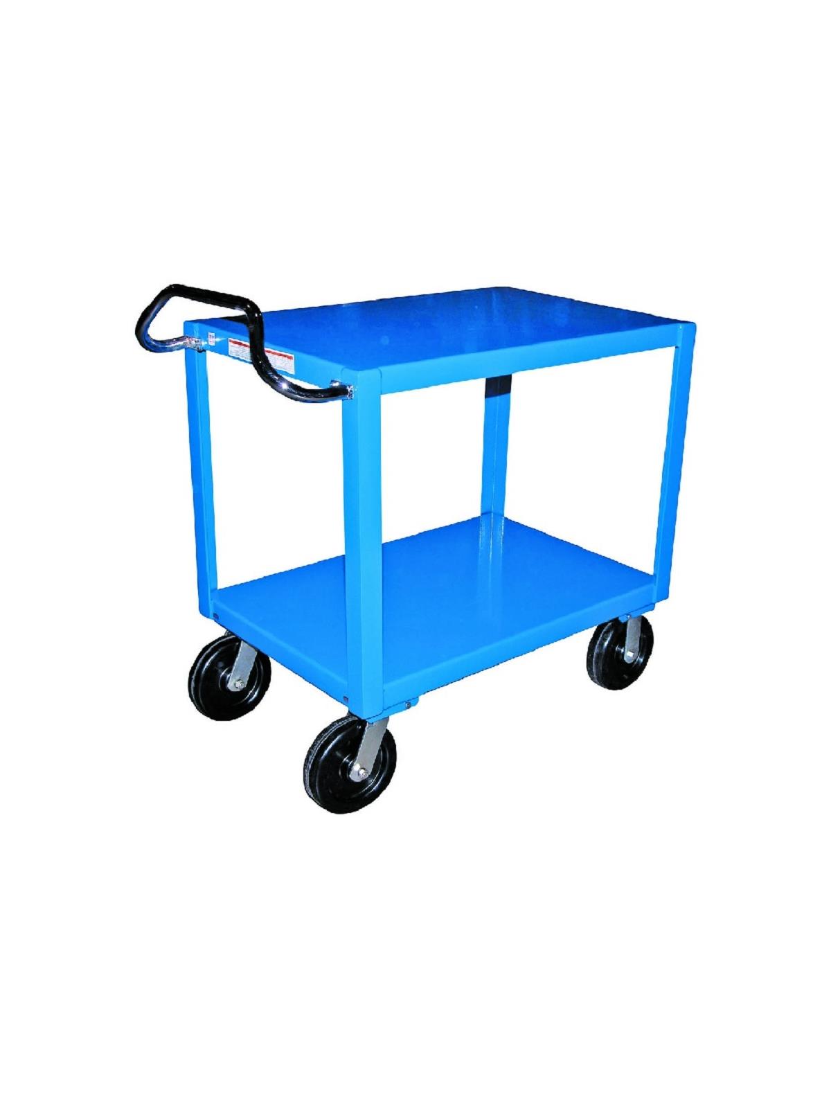 Constructed of heavy-duty steel to handle uniform loads up to 4,000 pounds. The patented ergonomic handle decreases fatigue by allowing the operator to easily maneuver the cart. Handle can be inverted for individual height comfort. Rolls on 8" x 2" casters, two (2) rigid and two (2) swivel with roller bearings. Many caster styles to choose from. Additional sizes available.  FOB Shipping Point.