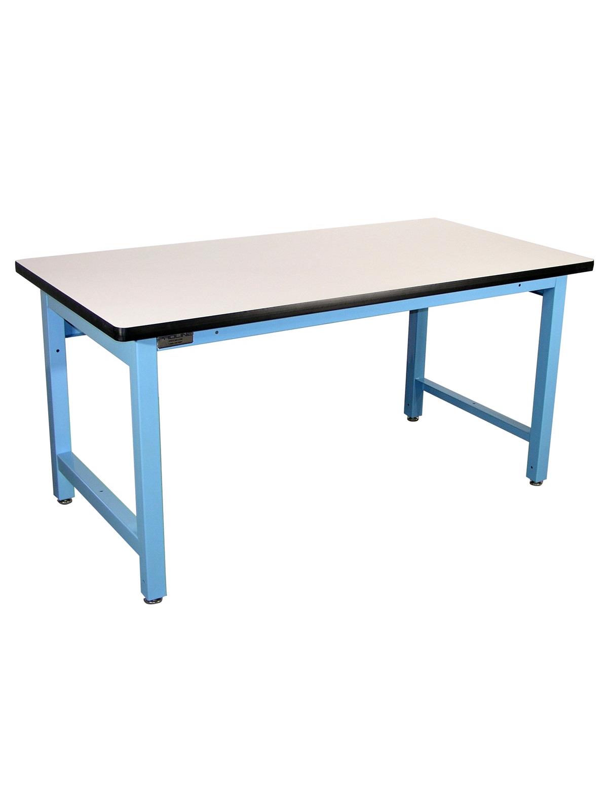 Ergonomic Base Work Stations help increase productivity by creating a station to meet your needs. Workers of every size can perform tasks comfortably by turning the handle to adjust the work surface. Durable and rugged 330 lb capacity. Work stations efficiently handle multiple shifts and tasks at one place. Tough 1.25" thick work surface stands up to hard industrial work. "T" mold edges with rounded corner adds a handsome touch. Work station includes surface, frame and leveling glides. 20" steel modesty panel provides lateral support. Available in Beige, Blue or Gray. FOB Shipping Point. Four Leg Economy Ergonomic Base Work Station Handsome work station provides efficient pull-pin height adjustment. Industrial grade features include 16 ga. 2" square legs, 2" thick front and 8" thick back rails. Safely handles 1000 lb capacity loads. Optional accessories shown in photo. See Related Items tab for Ergonomic Base Work Station and Electric Height Workbenches - Optional Accessories.