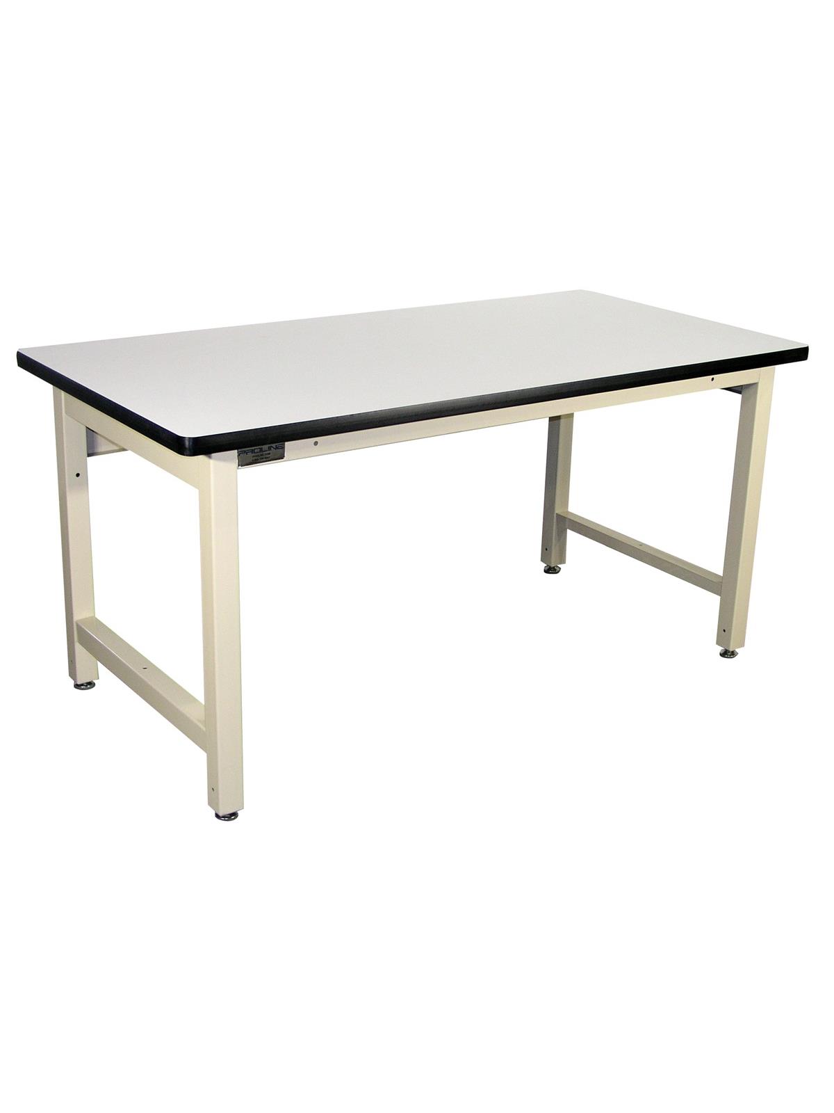 Ergonomic Base Work Stations help increase productivity by creating a station to meet your needs. Workers of every size can perform tasks comfortably by turning the handle to adjust the work surface. Durable and rugged 330 lb capacity. Work stations efficiently handle multiple shifts and tasks at one place. Tough 1.25" thick work surface stands up to hard industrial work. "T" mold edges with rounded corner adds a handsome touch. Work station includes surface, frame and leveling glides. 20" steel modesty panel provides lateral support. Available in Beige, Blue or Gray. FOB Shipping Point. Four Leg Economy Ergonomic Base Work Station Handsome work station provides efficient pull-pin height adjustment. Industrial grade features include 16 ga. 2" square legs, 2" thick front and 8" thick back rails. Safely handles 1000 lb capacity loads. Optional accessories shown in photo. See Related Items tab for Ergonomic Base Work Station and Electric Height Workbenches - Optional Accessories.