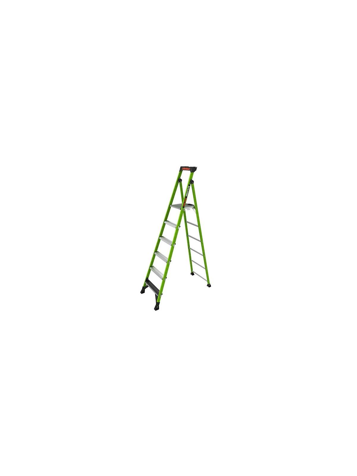 The Mightylite's patented-pending Ground Cue prevents injuries by signaling the user when it is safe to dismount the Ladder.  No-pinch platform design opens easily from a slim 4" storage profile and offers wide comfortable treads on each rung, with a spacious, comfortable standing deck.  Its innovative top cap allows you to keep all of your tools close at hand.  Designed to address the three leading types of stepladder injuries: painful body injuries from carrying heavy equipment, dangerous falls from standing on the top rung and ankle, knee and back injuries from missing the bottom rung. Available in both type IA (300 lbs.) and type IAA (375 lbs.) ratings. FOB Shipping Point.