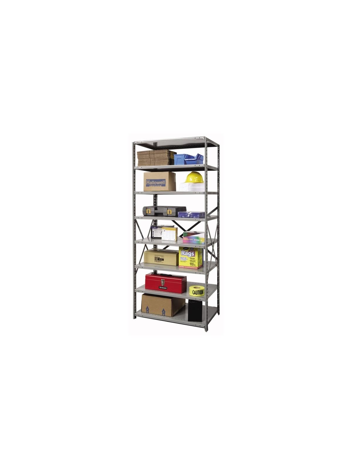 Shelves are box formed at front and back allowing high capacity storage with minimal deflection. Sides of shelves are triple flanged adding to shelf strength. Compression shelf clips improve overall unit capacity. Posts are punched to allow shelves to be adjusted top to bottom at 1-1/2” on center. Beaded front posts allow use of full shelf width and are common between adjoining units reducing assembly and installation time as well as reducing cost. Angle back posts can be bolted together when joining units side-by-side or back-to-back. Side and back sway braces eliminate units sway providing a safe storage solution. Color: Dark Gray (HG). FOB Shipping Point.