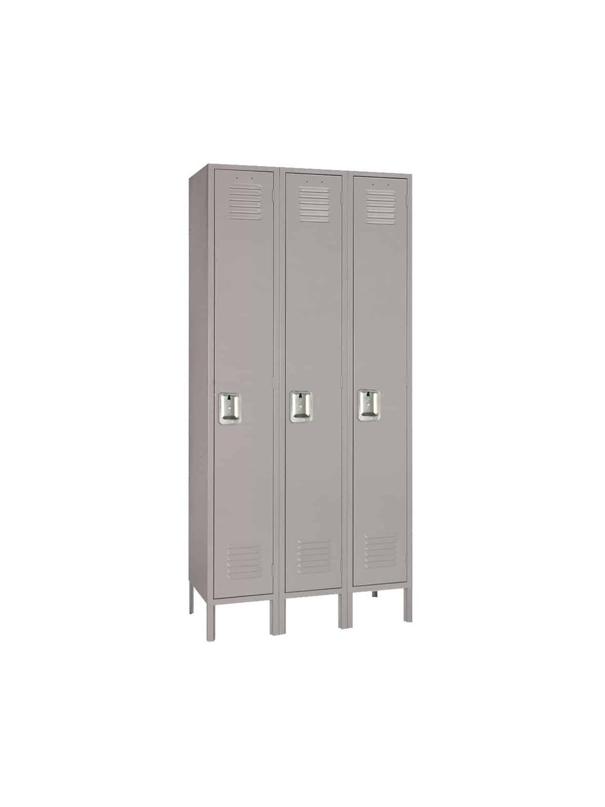 Lockers feature louvered doors for ventilation. Padlock attachments are an integral part of the handle (padlock not included). Factory assembled lockers feature pop rivet construction. FOB Shipping Point. Single Tier Lockers - Features steel recessed handle and hooks for hanging clothing and other items. Single tier lockers also include a separate shelf. See Related Items tab for Double Tier Steel Lockers, Locker Benches, Closed Style Bases, Six Tier Steel Lockers and Slope Top Kits. Surcharge may apply.