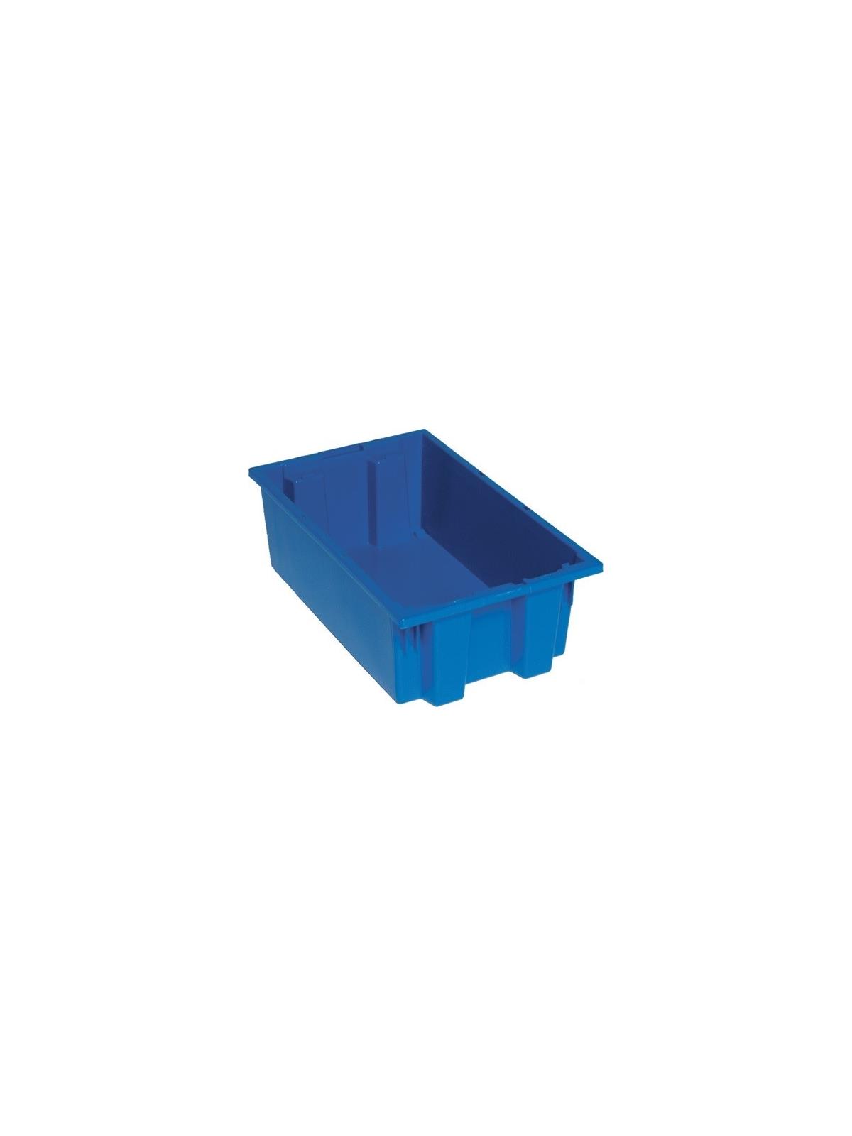 High density polypropylene, injection molded for uniform wall thickness and added strength. Lids snap tightly and securely for a safe fit. Quick 180° turn offers space-saving stacking and nesting. Stacks 6 high. Fits 48" x 40" pallets (6 SNT190, 4 SNT230 per level). Usable in temperatures from -­10° to 250°F. Available in Gray, Blue, Red or Clear. Optional clear, see-thru Stack and Nest Label Holder (HSNH010) and optional Dolly (HDLY-3018) available. FOB Shipping Point.