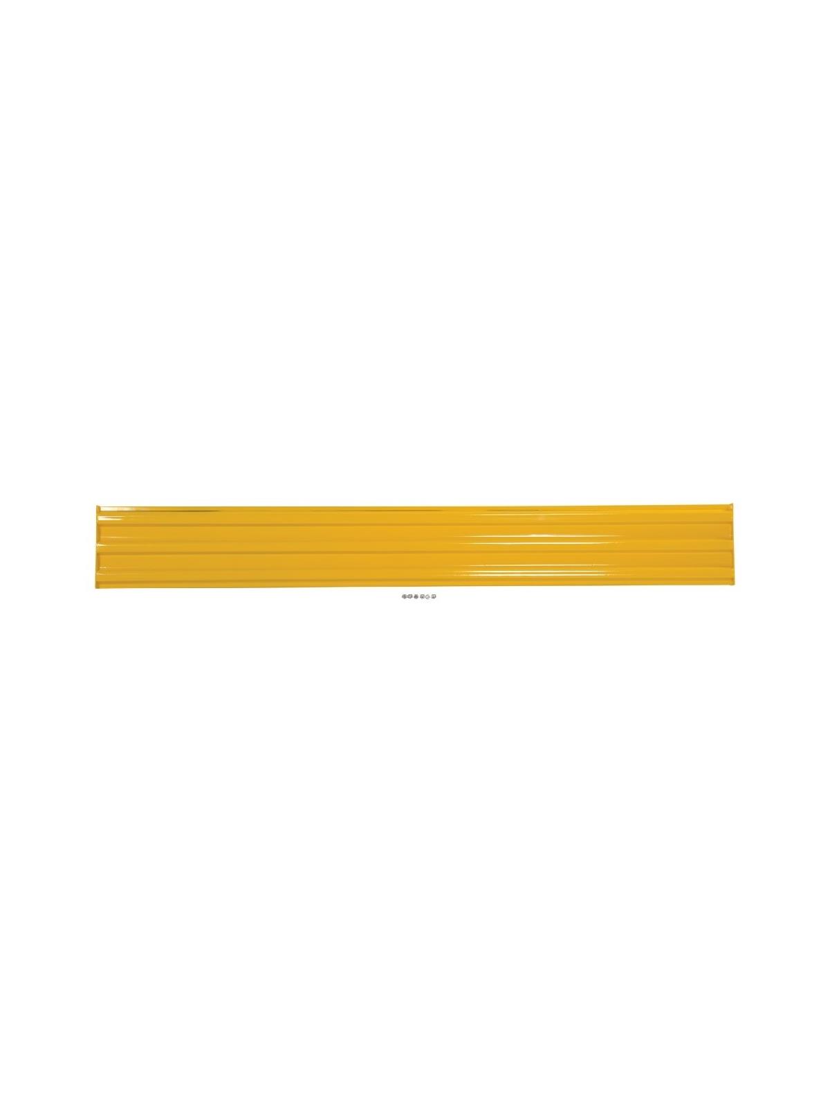 Create a modular system to protect equipment, inventory, and individuals from damage or injury. Corrugated rails are constructed from 1/8" thick material, made for high impact resistance indoors and out. Posts are constructed of 1/4" thick material with mounting holes on all four sides for use as corner or center posts. Posts measure 4" x 4" with a 10" square steel base plate that is 5/8" thick. Bolts and washers are provided with individual rail sections. Provide easy accessibility with our drop-in style rails. Slide rail sections into post saddles for simple assembly. Each drop-in style rail section includes two brackets. Bolt-on style rails are designed for permanent installation. Optional gate available for easy access in and out of work area. Galvanized material available. FOB Shipping Point.