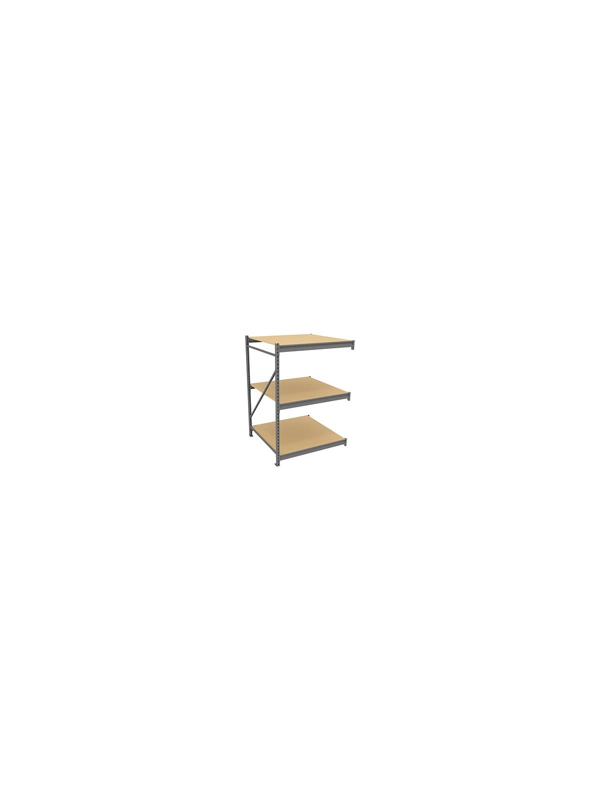 Features adjustable shelves on 2" increments for maximum use of vertical space. Assembly is quick and easy -- beams attach to the frames in seconds without tools. Rolled formed steel beams provide support at front and rear of shelf edges. Additional support is provided by front-to-back center braces. Racks are available in heights of 72", 96" and 120"; widths of 48", 72" and 96" and depths of 24", 36" and 48". Select particleboard decking or corrugated steel decking. Starter units and add-on units have 3 shelf levels.  Additional shelf levels are available to increase capacity. Begin each row of shelving with a starter and use add-on units to complete row. Medium Gray powder-coated paint finish. Note -- bulk storage racks should be hand loaded only. FOB Shipping Point.
